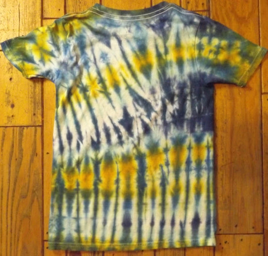 Kids Jigjag Tie-dye Large Crew Neck T-shirt Blue and Yellow Stripes