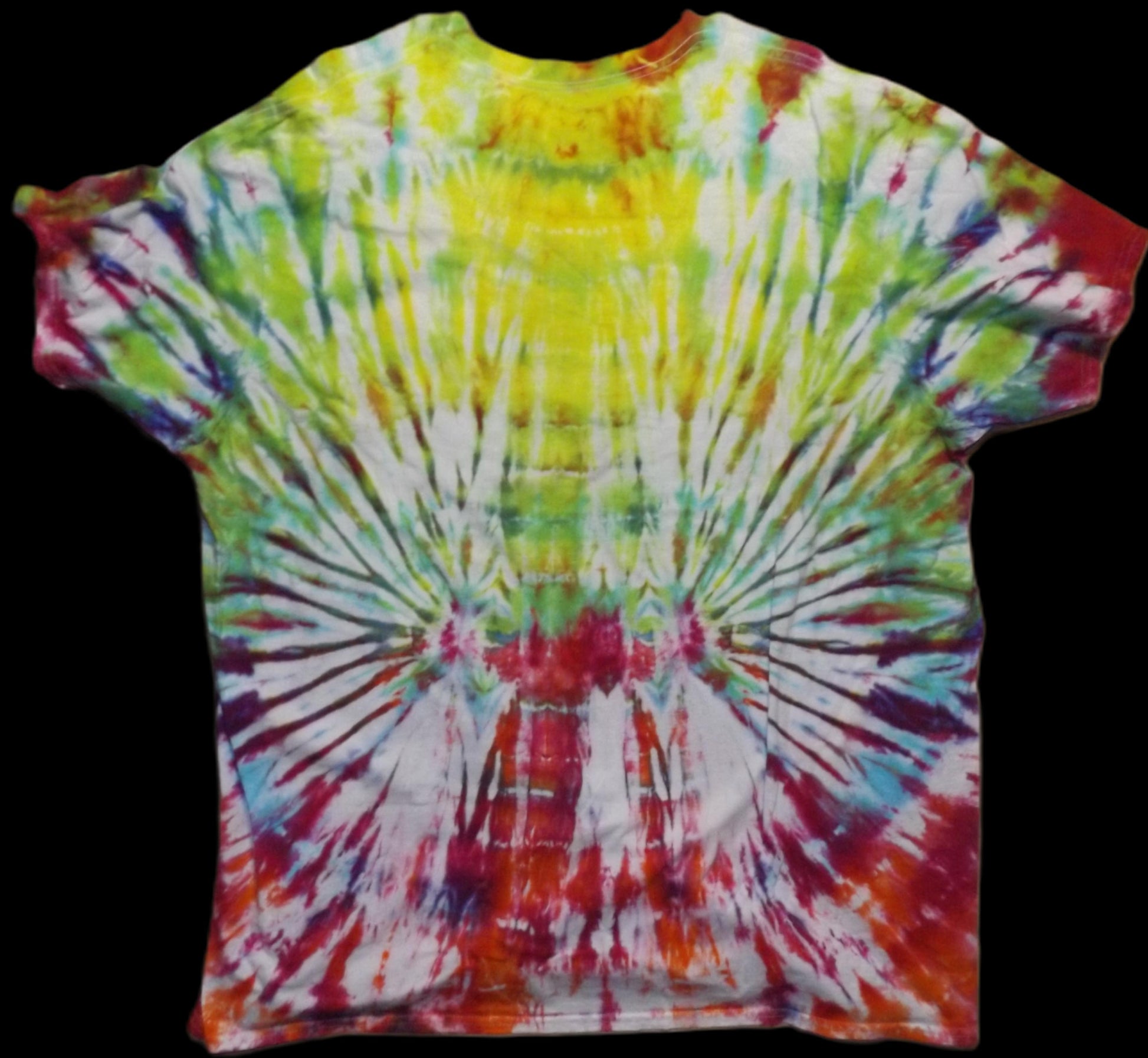 Fun, bright, and great pattern makes this one-of-a-kind tie dye stand out among it’s peers. People will stop you on the streets or in the shops and when they say hey! Great tie dye! Where’d you get it, and you can strike a pose and flash them our card and say Groovy ties & freaky dyes.com